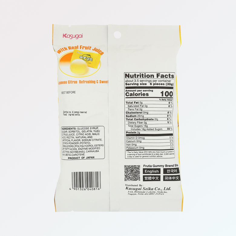 Kasugai Yuzu Gummy blends the bold zest of Japanese yuzu citrus with a soft, chewy gummy texture that’s hard to resist. Made with real yuzu juice, each bite delivers a tangy-sweet hit that’s brighter and more complex than lemon or lime—think citrus with a floral edge.